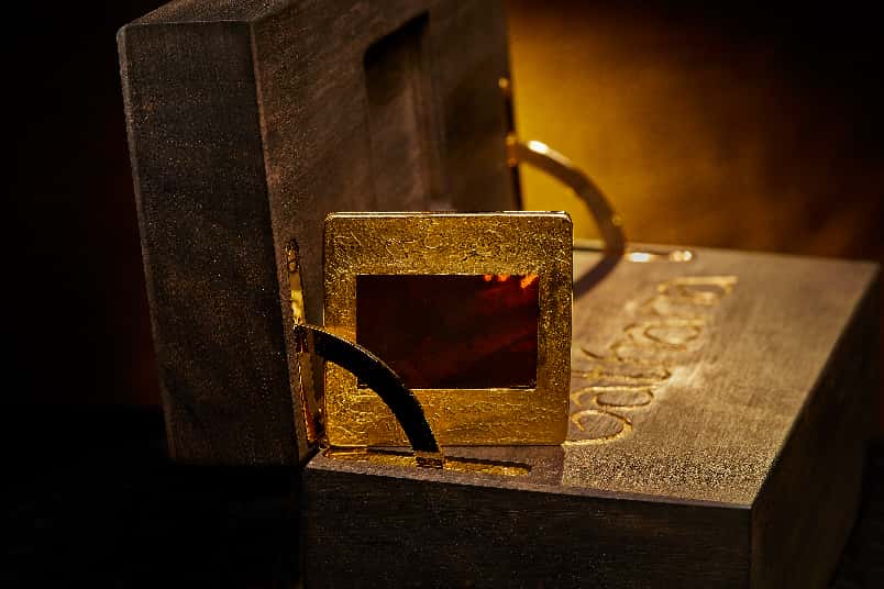 Each negative will be sent in handmade box made by craftsmen and professionals in the material used. For the first sale edition of negatives, the box is made from ebony and pure gold, always sustainable conflict free fair trade materials. The work is done by 2 craftsmen: